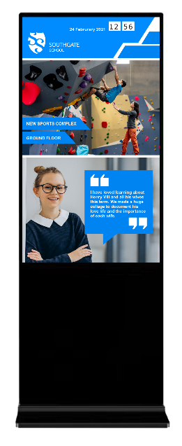 Su diseño ultradelgado y elegante permite una integración estética en espacios como vestíbulos, tiendas o salas de espera, convirtiéndolo en un punto de contacto dinámico con la audiencia.