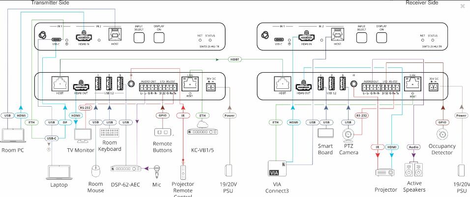 El Kramer SWT3-21-HU-TR es un switcher extensor 2×1 de alto rendimiento con entradas USB-C y HDMI, diseñado para salas de reuniones híbridas y aulas avanzadas que combinan BYOD y PC de sala. Permite conmutar y extender vídeo 4K60, USB, audio y control mediante HDBaseT 3.0 hasta 40 metros sobre cable de par trenzado. Su arquitectura conmutada AV+USB simplifica el uso de cámaras, micrófonos y periféricos compartidos entre participantes presenciales y remotos.