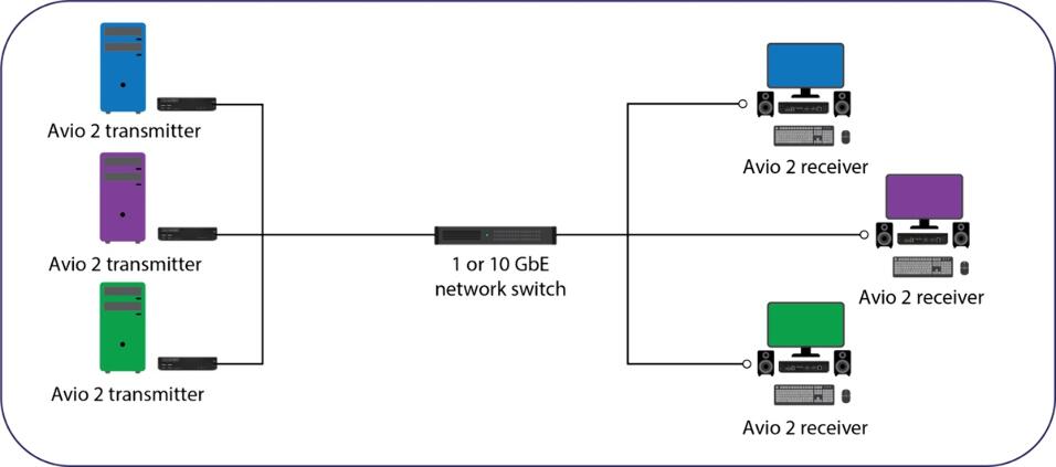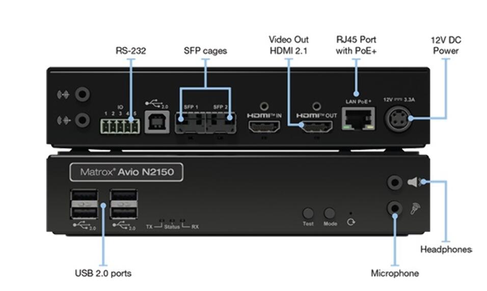 El Matrox Avio N2150 es un extensor IP KVM que permite control remoto en tiempo real de sistemas informáticos a través de redes estándar, transmitiendo señales 4Kp60 4:4:4 con latencia mínima. Está diseñado para integrarse en infraestructuras de red basadas en IPMX y SMPTE ST 2110, lo que facilita su uso en entornos modernos AV/IT. Su enfoque técnico permite centralizar equipos en ubicaciones seguras mientras usuarios remotos operan con total fluidez desde otra sala o edificio.