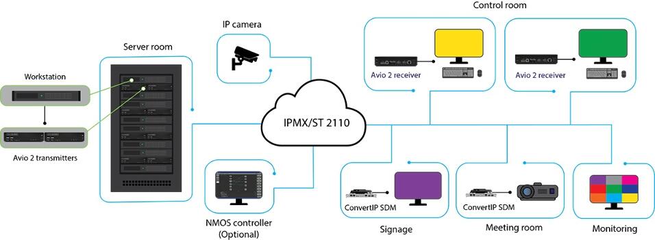 • Soporte de video 4Kp60 4:4:4 con transmisión sin compresión o con compresión visualmente sin pérdidas opcional.