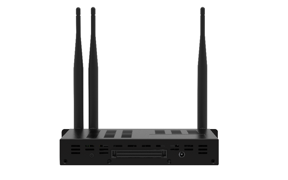Gracias a su entrada posterior DC in puede funcionar alimentado por un cargador universal de portátil 12~19V 3 A (no suministrado). Con ello podemos incluso conectarlo externamente para actualizar monitores interactivos con OPS no compatible , o incluso in OPS. También puede usarse, en este modo, como dispositivo personal Android Google EDLA Box.