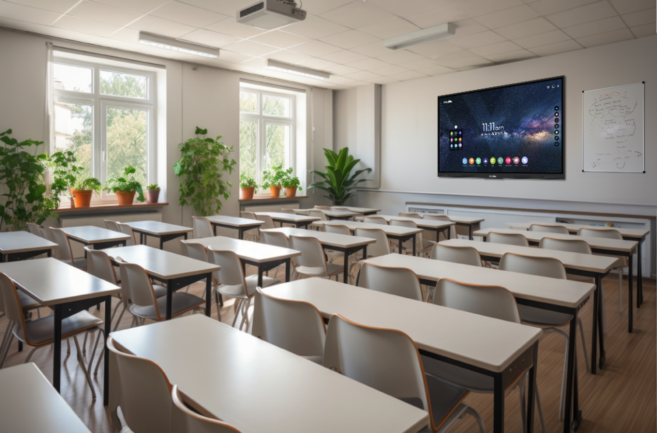 Monitor interactivo TRAULUX Performance 4K, con Android embebido y triple modo de funcionamiento. Diseñado para entornos profesionales y educativos.