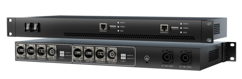 Conversión bidireccional entre HDMI 2.0, SDI (HD/3G/6G/12G-SDI) y fibra óptica.