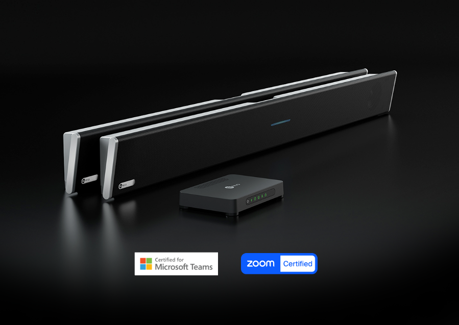 • Micrófonos omnidireccionales + tecnología “Microphone Mist”: 24 micrófonos físicos (12 por barra) que generan hasta 16.384 micrófonos virtuales para garantizar que siempre haya un micrófono cerca del orador.