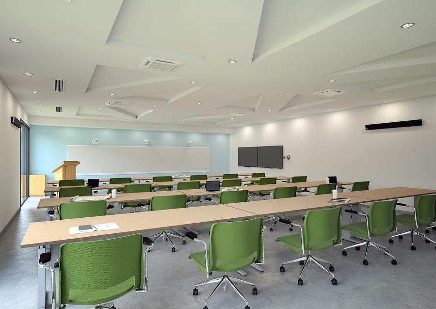 • Educativo: Para aulas híbridas o salas de formación en universidades, donde los participantes pueden moverse por el espacio y se necesita captura de voz en toda el aula.