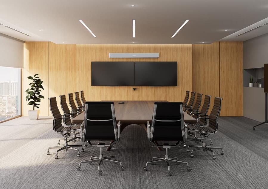• Corporativo: Salas de juntas, centros de conferencias, auditorios donde se requiere cobertura de audio clara y uniforme, y donde se valoran la rapidez y simplicidad del despliegue e integración con plataformas de vídeo.