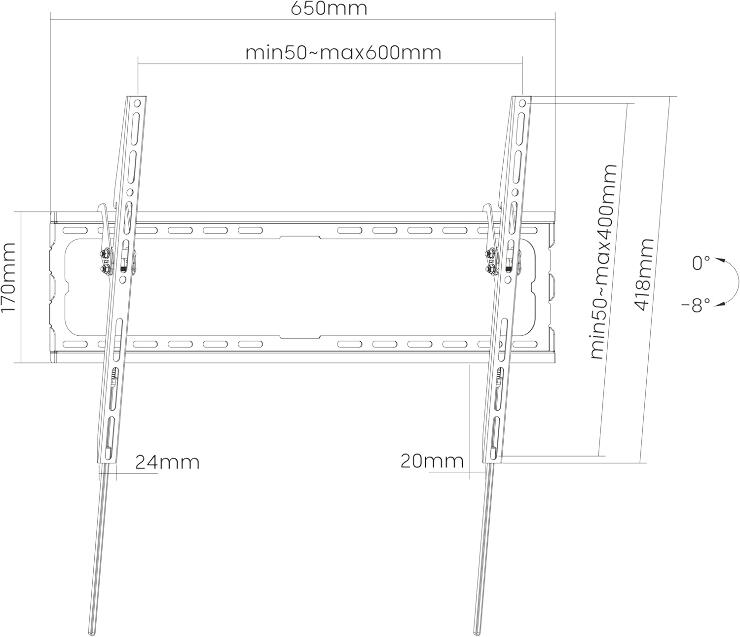 Soporte de pared inclinable para TV / monitor de para pantallas de 32″ a 70”, distancia a la pared 20 mm., capacidad de carga 45 kg., VESA desde 75×75 hasta 400×400.