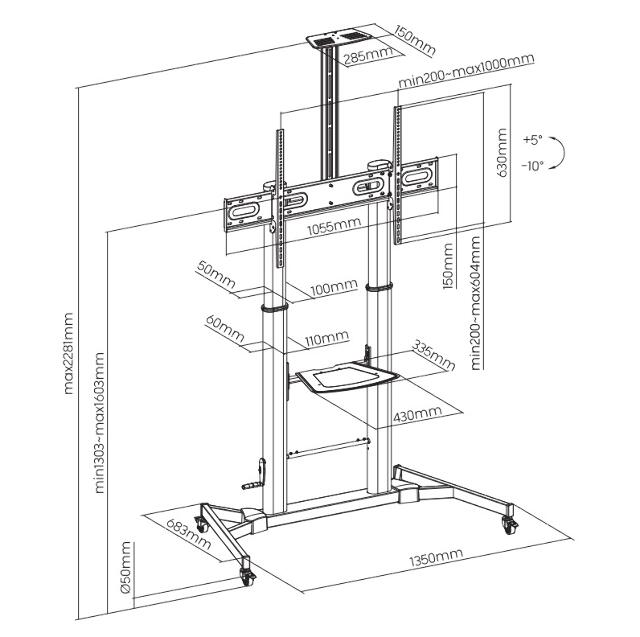 TRAULUX LIFTY SOPORTE MÓVIL MONITOR MANIVELA 60″ A 86″ 75 KG. 1000×600 CON SOPORTE CÁMARA