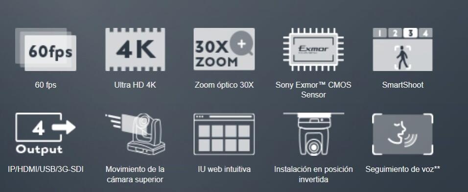 AVER CAMARA TR335 4KP60 30X HDMI 3GSDI USB RJ45 AUTO TRACKING NDI HX3* NEGRO